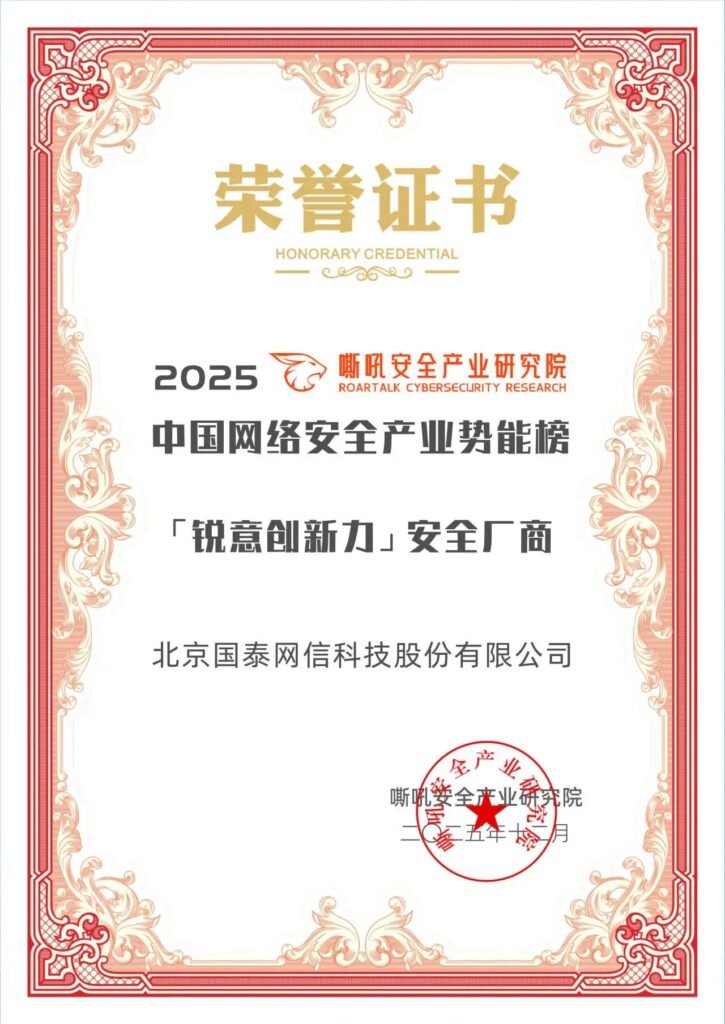 来源:喜报!国泰网信荣膺《嘶吼2025中国网络安全产业势能榜》双项殊荣,实力入选“专精型”与“锐意创新力”榜单-国泰网信官方公众号