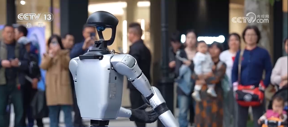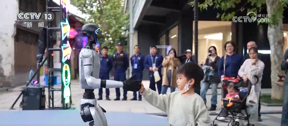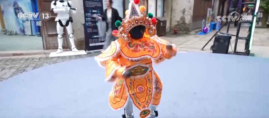 这里就是浙江桐乡市濮院时尚古镇的“互联网生活嘉年华”。老街上,人形机器人、四足机器人等科技产品轮番上场进行表演,吸引了不少游客驻足观看。